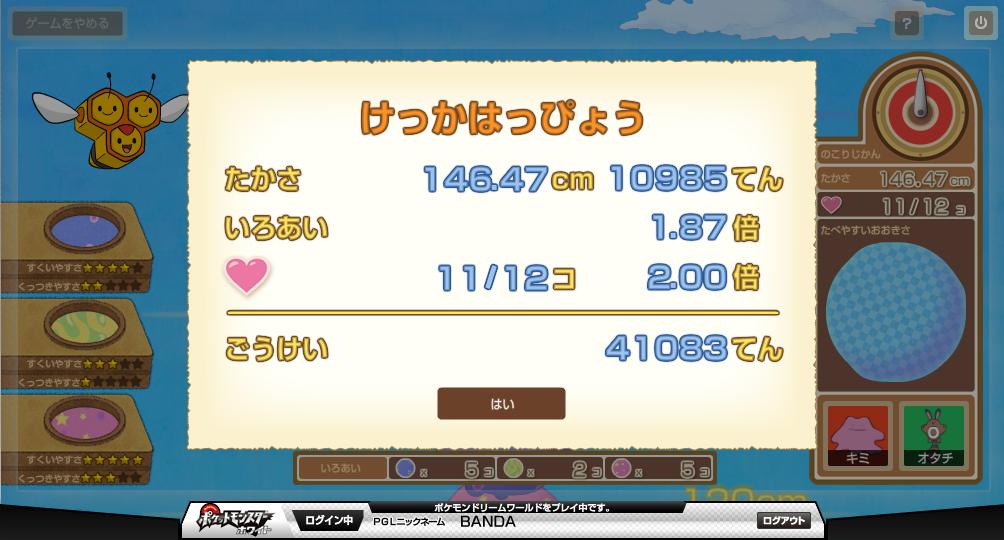 小游戏 寻找走失的PM 时间限制:1分30秒 目标:找到目标PM 点击各场景内摇动的树丛/云朵/岩石后会出现PM 在场景中可以捡到一个树果,目标PM一定在树果所在场景的两格之内 点击右下角的按钮可以听声音确认PM的位置,需要消耗几秒钟的时间 「ここにいるみたい!」→就在这里 「ちかくにいるみたい」→一格之内 「そんなに遠くないみたい」→两格之内 「何も聞こえない。」→两格之外