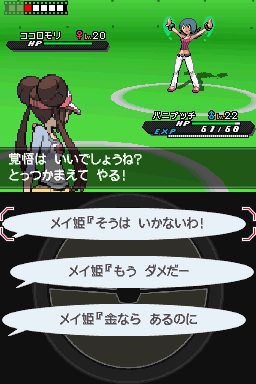 选对台词后对方会一直用猛毒,不过因为之前烧伤的关系无压力,此时冰雹应该停了再耍一次,之后一直天气球就是了,回合数绰绰有余 第13回合才出现的台词选择一般都不会拖多么久而且也不影响之后的成品