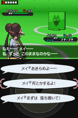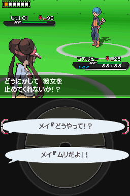 一开始朝北鼻用电磁波,依靠坚硬特性撑住(如果对方没有麻痹不能动就一直用忍耐,有麻痹则用痛苦平分),第二回合用忍耐再撑住,之后台词选择