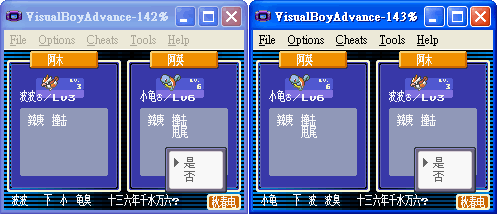 请准备两个不用的存盘,记着要不同! 我们以图下的火红版来做实验,一个火红版选了杰尼龟,另一个则拿了小火龙, 若要将杰尼龟传过去,请将两个游戏都各捉一只精灵! 注意:这是游戏刚刚开始的时候!注意:是可以联机的仿真器