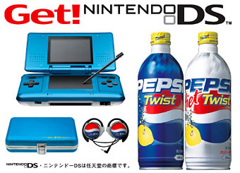 在日本将要举行一个特殊的比赛,为了庆祝百事可乐的新包装出炉,看你能否赢得百事可乐版NDS。此外还有一些其他的任天堂游戏类奖品。
