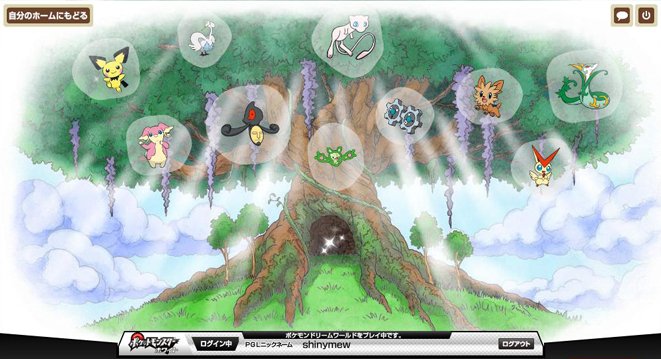 走完十步之后会来到一棵大树,上面的气泡里飘着很多PM(我也不知道干嘛的,反正我两次看到的PM不一样) 这里就能选择刚才路上遇见的一只PM并带回家了,不过必须消耗一个树果。 PS:这里选择不带PM回家的话可以多次去森林刷,而且之前遇见的可以保留……只是要注意一下登录的时间,超时自动退出可就亏大了哦。